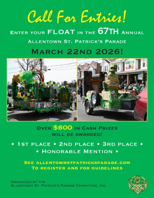 The 2026 Parade will be held on Sunday March 22, 2026. The parade will start at The Allentown Fairgrounds, 19th & Liberty Streets; proceed North on 19th to Tilghman Street, West on Tilghman to 25th St., South on 25th St. to Liberty St., and East on Liberty returning to the Fairgrounds.